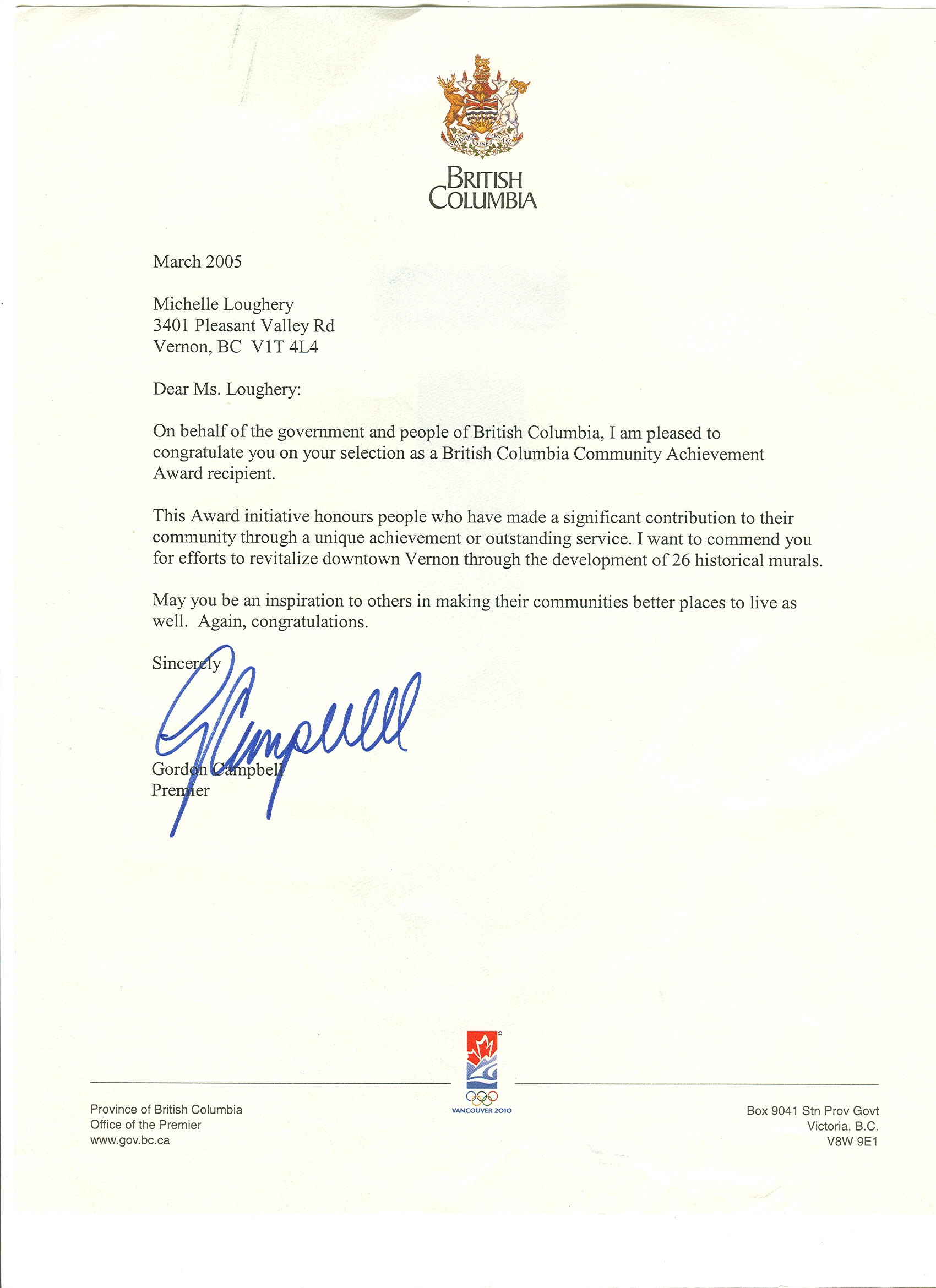 Organizations partnered with include: City Of Vernon, Vernon Museum, The Downtown Vernon Association, Province of British Columbia, Ministry of Tourism, National Route 66 Federation, The City of Merritt, Merritt Walk of Stars, Viva Cuba Route 66 Mural City, Golden BC Art Council, BC Government, National Crime Prevention of Canada, County Music Capitol of Canada, First Nation Steering Committee, SFU, UBC, Surrey School District, The Government of Canada, First Nation Educational Steering Committee, CDIT, Canadian Country Music Hall of Fame, and CCMA Award Show, Current North Okanagan Artist Alternative.